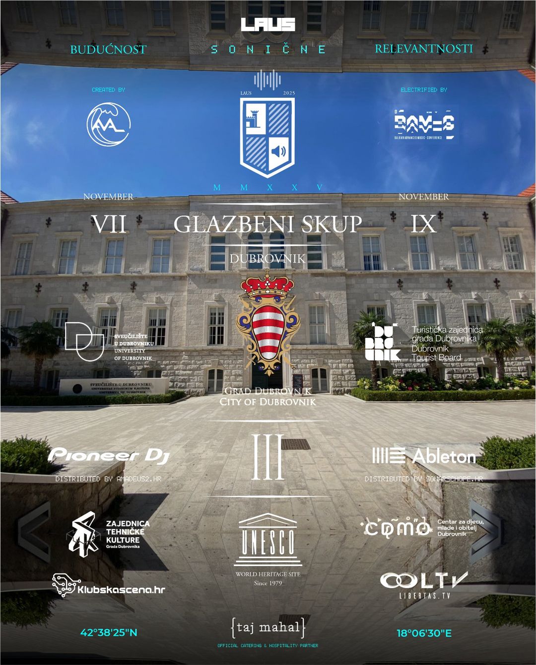 Ove godine Dubrovnik ponovno okuplja profesionalce i entuzijaste iz svijeta glazbe, s posebnim fokusom na kreativnu produkciju, suvremenu elektroničku glazbu i inovativne načine suradnje, a održava se na prepoznatljivim lokacijama – Sveučilištu u Dubrovniku, Centru za mlade, djecu i obitelj i Lazaretima.