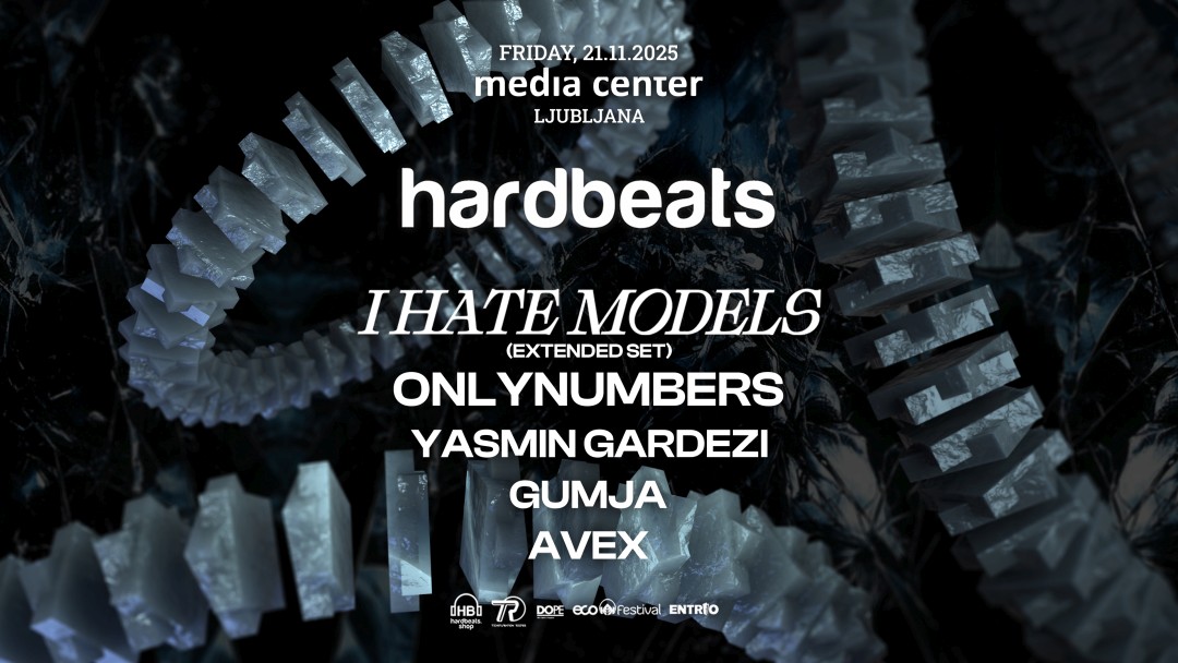 HardBeats u petak, 21. studenog u Media Centru u Ljubljani sprema spektakl na čijem je čelu enigmatični i moćni I Hate Models. Francuskoj zvijezdi za pultom se pridružuje i jedan od najiščekivanijih slovenskih debija te sve snažnije ime scene Onlynumbers. Svoj slovenski debi ima i Yasmin Gardezi, koja donosi svoj prepoznatljiv, visokooktanski stil. Regionalni teškaši Gumja i Avex dodatno zagrijavaju atmosferu i upotpunjuju ovaj eksplozivni lineup.