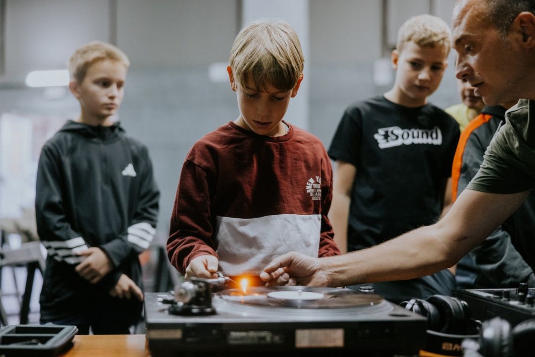 Donosimo video isječke i razgovor sa voditeljem o gramofonima i kulturi miksanja na njima, kao i samom vinylu. Radionica je bila namijenjena je djeci od 10 do 16 godina, a Ivan Yuri Jurić kao voditelj, vještine DJ-a izbrusio je uz kolege i mentore iz matičnog benda i produkcije Banana Zvuka.