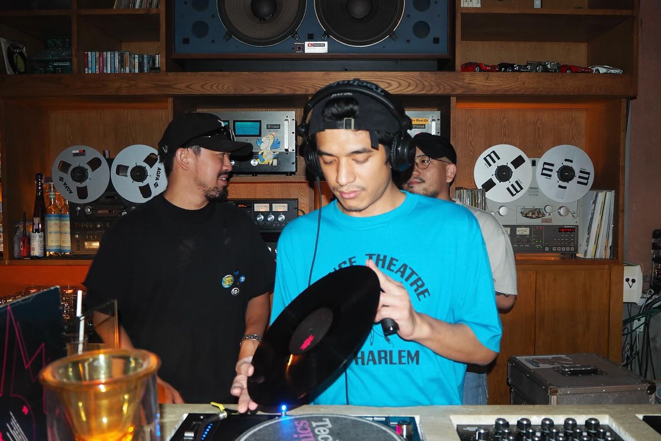 Na oba kraja zida iza šanka nalaze se spomenuti zvjerski JBL 4350 WXA zvučnici spojeni s parom McIntosh 2300 pojačala. Također ćete pronaći par Technics SL1200 gramofona, plus niz drugih izvora, uključujući Tascam magnetofonske kasete i Nakamichi kasetofon.