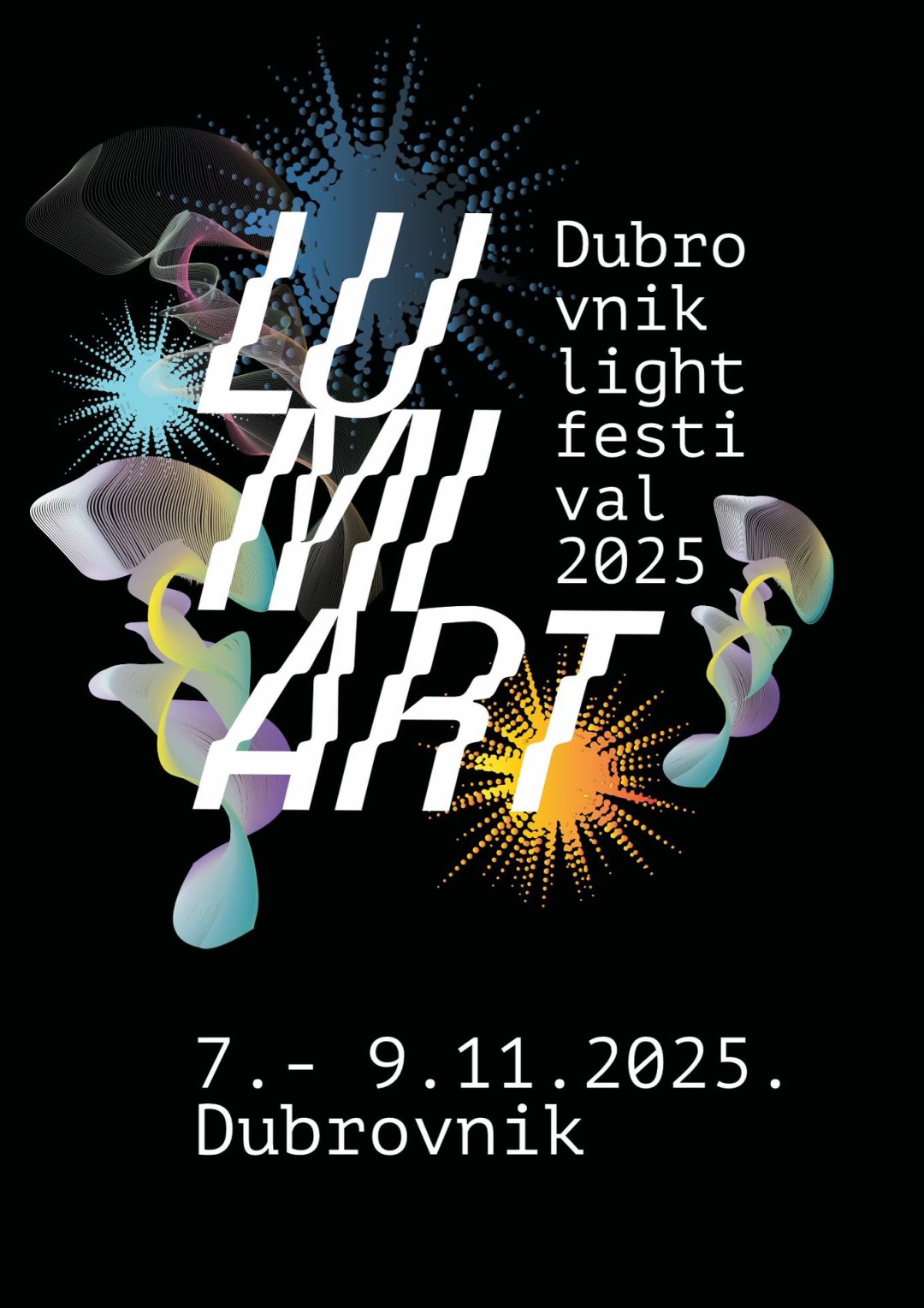 Jubilarno, peto izdanje Festivala svjetla Lumiart održat će se od petka do nedjelje u Dubrovniku. Ovogodišnja tema nosi naziv “Podmorski grad”, a uz samostalne programe ističe se i suradnja s festivalom Dubrovnik Jazz Outbreak koji se održava u istom periodu. U Dubrovnik stižu brojni svjetski priznati multimedijalni umjetnici, među kojima su mađarski kolektivi Fényhangár i Night Projection, zatim Ignat Radu iz Rumunjske – autor koji je nastupao na najvećim svjetskim festivalima i prošle se godine predstavio instalacijom “Faceless” u palači Sponza, te dubrovački Pixel Design. Posjetitelji će imati priliku doživjeti čaroliju tehnologije, suvremene umjetnosti i inovativnog stvaralačkog pristupa kroz projekcije, 3D mapping i audiovizualne interaktivne instalacije. Tijekom sva tri dana festivala, od 18 do 23 sata, šetnja Stradunom, trgovima, starim palačama i kulturnim ustanovama postat će posebno iskustvo uz mnoštvo svjetlosnih i interaktivnih programa.